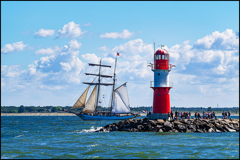Es war der 2. Weihnachtsfeiertag 2010. Nach der obligatorischen Völlerei der Vortage inklusive Gänsebraten trieb es mich raus an die frische Luft. Mein Ziel war Warnemünde, was sich als gute Idee erwies. Das Grau des Himmels der vergangenen Tage riss auf, so dass sich interessante Strukturen am Himmel bildeten. Die Mole zeigte sich von einem Panzer aus Schnee und Eis bedeckt, und Teile der Ostsee begannen zuzufrieren. So ergaben sich eine Menge lohnender Motive. Bei diesem Bild reizte mich vor allem die Tiefenwirkung durch die verschiedenen horizontalen Linien und der Molenturm als vertikales Gegenstück dazu und natürlich auch der Kontrast der sehr dunklen Wolken und Steine zu den weißen Partien aus Eis, Schnee und Wolken. Dies bewog mich auch dazu, das für mich eher ungewöhnliche Schwarzweissformat zu wählen…